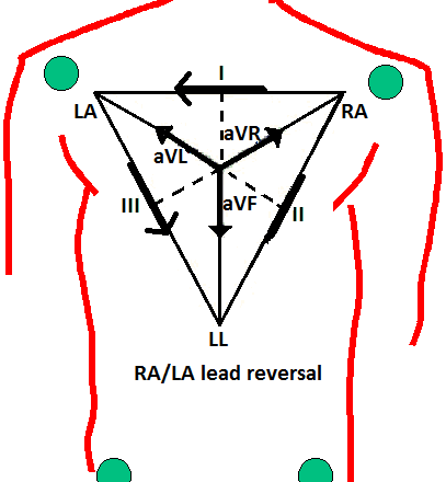 Якщо повернути відведення LA і RA, наприклад, відведення I інвертує: